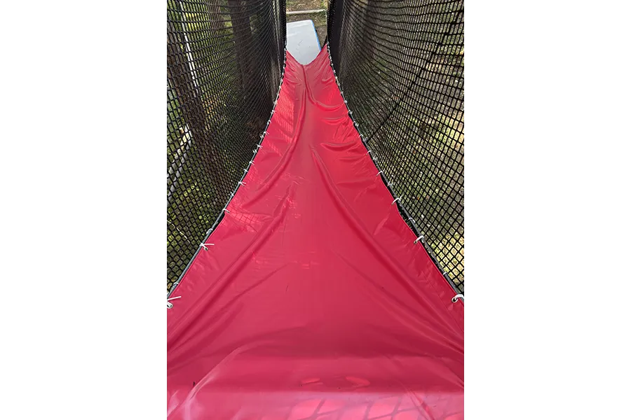 実際にライターが体験したところ、公園にある滑り台を想像していると、良い意味で大きくその予想を裏切られます! 飛行機の緊急脱出用スライドと同じ要領ですべることができるのですが、これかなりスピードが出ます。上体を起こし、両手を挙げた姿勢をキープしたまま滑ろう!