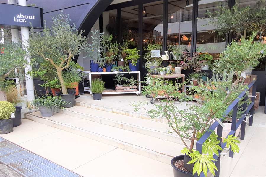 「about her.(アバウトハー)」は、「マツオインターナショナル」というアパレル会社が運営するセレクトショップ。 「マツオインターナショナル」 のブランドの1つである「FiORi(フィオリ)」という、洋服と連動したアートフラワーショップがこの植物や観葉植物部門を担当しています。