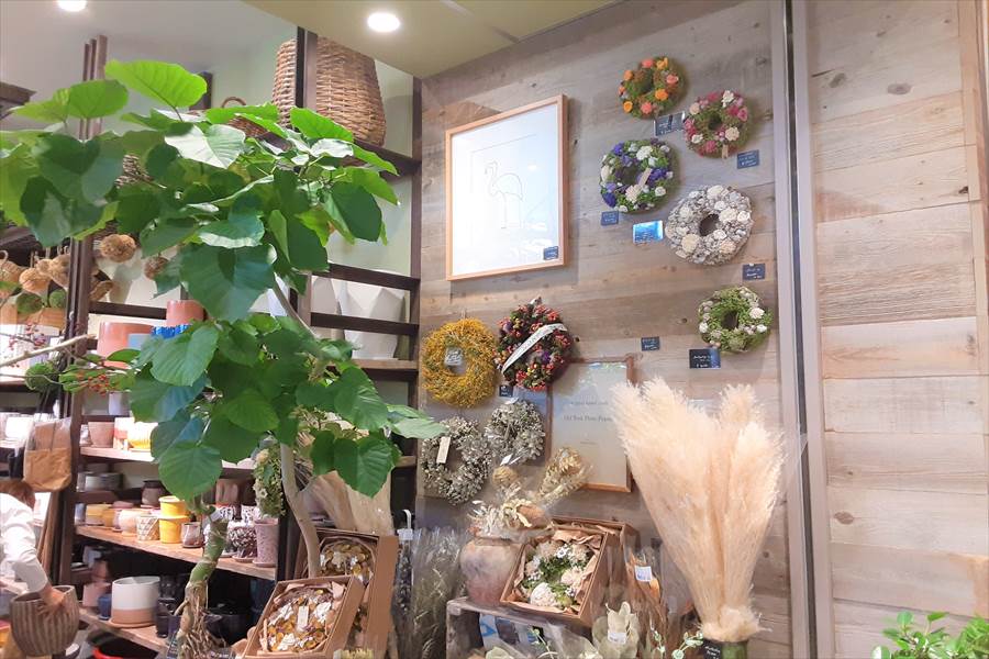 また最近人気が高まっているドライフラワーなども多くそろっています。大小様々なリース類なども多いので、おうちに飾りたい人はぜひチェックしてみて。
