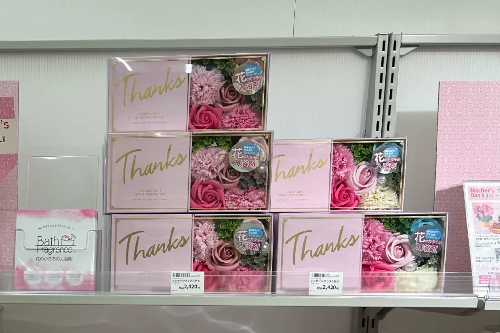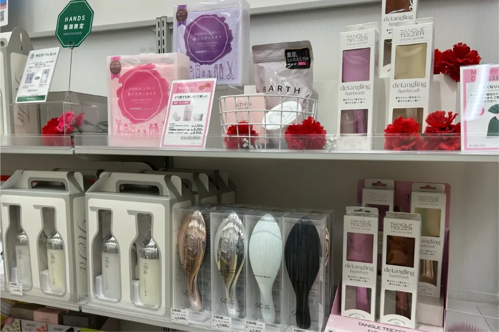 本物のお花のように華やかな入浴剤やプリザーブドフラワーも圧巻の品揃えです。ほかにも、ちょっとリッチなヘアケアアイテムや美容家電なんかもアリですね。母の日ギフトのために訪れたつもりが、気付けば自分がほしいものばかりチェックしていた…なんて事態になったのはヒミツです。