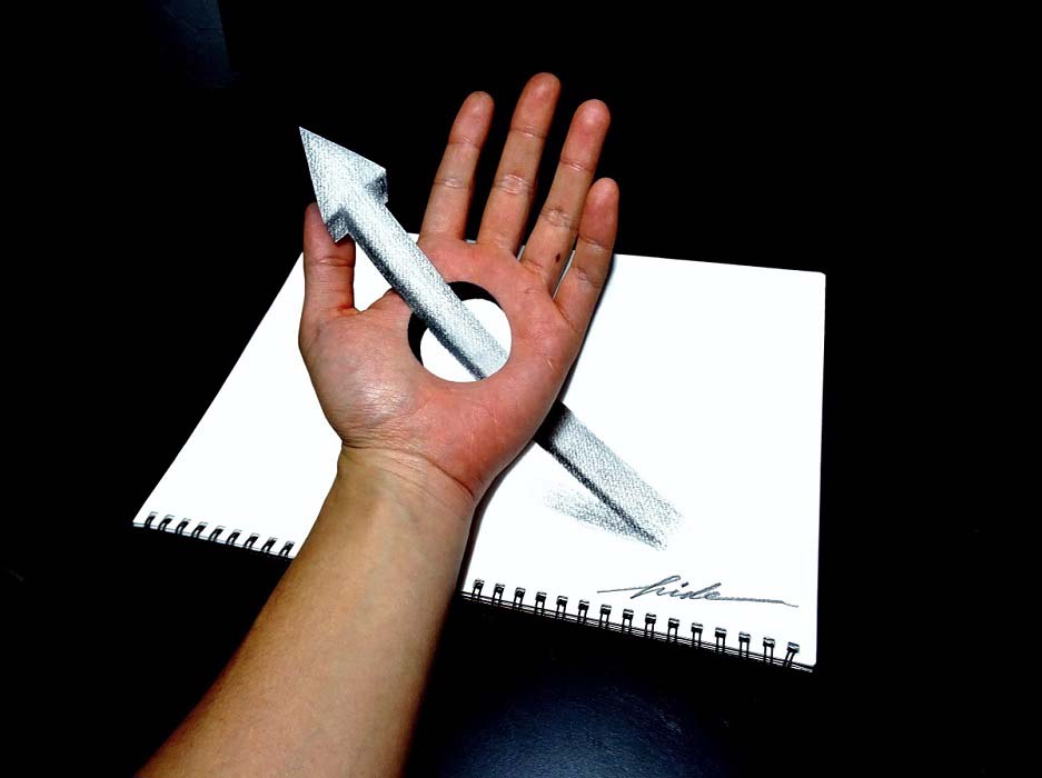 スケッチブックに描かれた絵を、身体や視点を動かして“ある方向”から見てみたり、カメラを通して覗いてみたりすると……なんと、絵が飛び出して見える!他にも、壁や手のひらを突き抜けて見える作品も展示。不思議な視覚のマジックを全身で体感してみて。