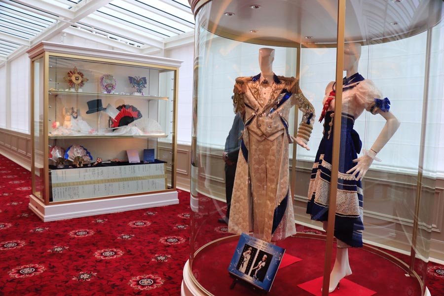 宝塚歌劇団のトップスター5人が着用していた衣装や、宝塚歌劇団の公演に関する展示スペースが設けられています。※展示内容は時期により変わります。