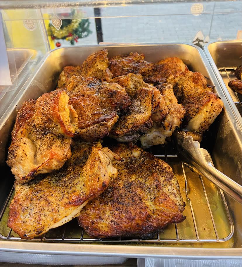 丸焼きはクリスマスのお楽しみにして、夕飯に買って帰ることにしました。一番人気の名物串焼き(1本120円)と骨なしモモ肉(1枚520円)を購入し、食卓に。串焼きはムネ肉なのに、じゅわっとジューシーでうま味が口に広がります。さすが人気商品!モモ肉の方は、揚げずに焼きあげているから某チェーン店より食べ応えがあるのに、ヘルシーな感じが好印象です。クリスマスの前後は、きっとかなり混みあうはずです。ただいま24日、25日分の予約受付中。食べたいメニューが決まったら、予約しておくのが得策ですよ。しかもクリスマス限定フライドチキン(520円)も用意されるそうです!
