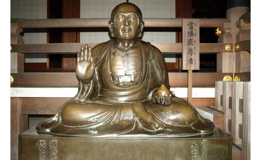 堂前には十六羅漢の一人の賓頭盧尊者(びんずるそんじゃ)坐像が安置されています。この像を撫でると病気が平癒するという民間信仰もあります。