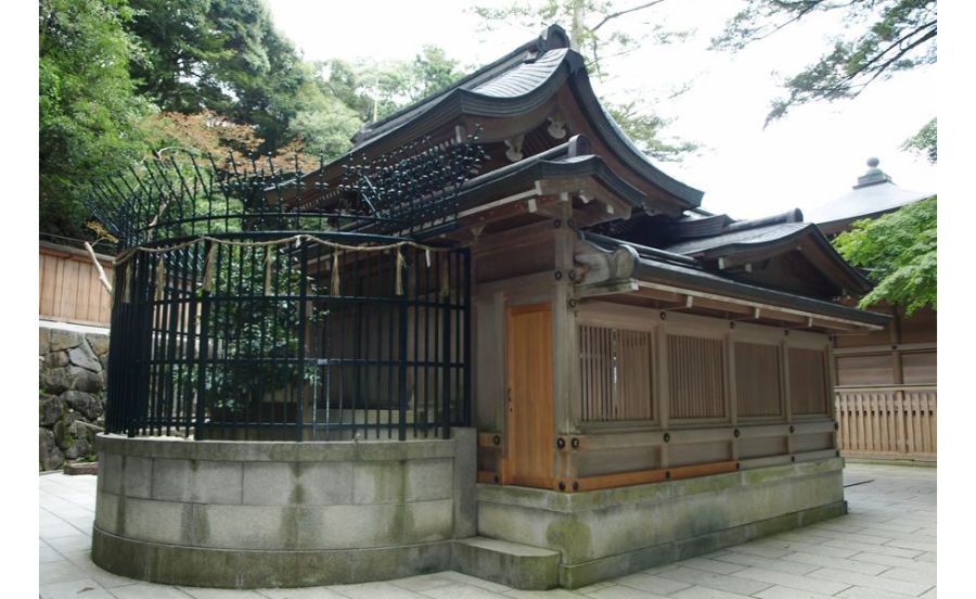 拝殿の裏にある荒神様が姿を現したと伝えられる場所が荒神影向(こうじんようごう)の榊です。創建当時、荒神様が姿を現した報告を受けた宇多天皇が大変感銘して「日本第一清荒神」の称号を授けたと伝わっています。