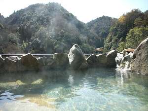 温泉はラドンを含む、武田尾温泉の源泉をかけ流し。露天風呂から望む武庫川の渓流と山々の風景に、日常を忘れて身も心も癒やされます。