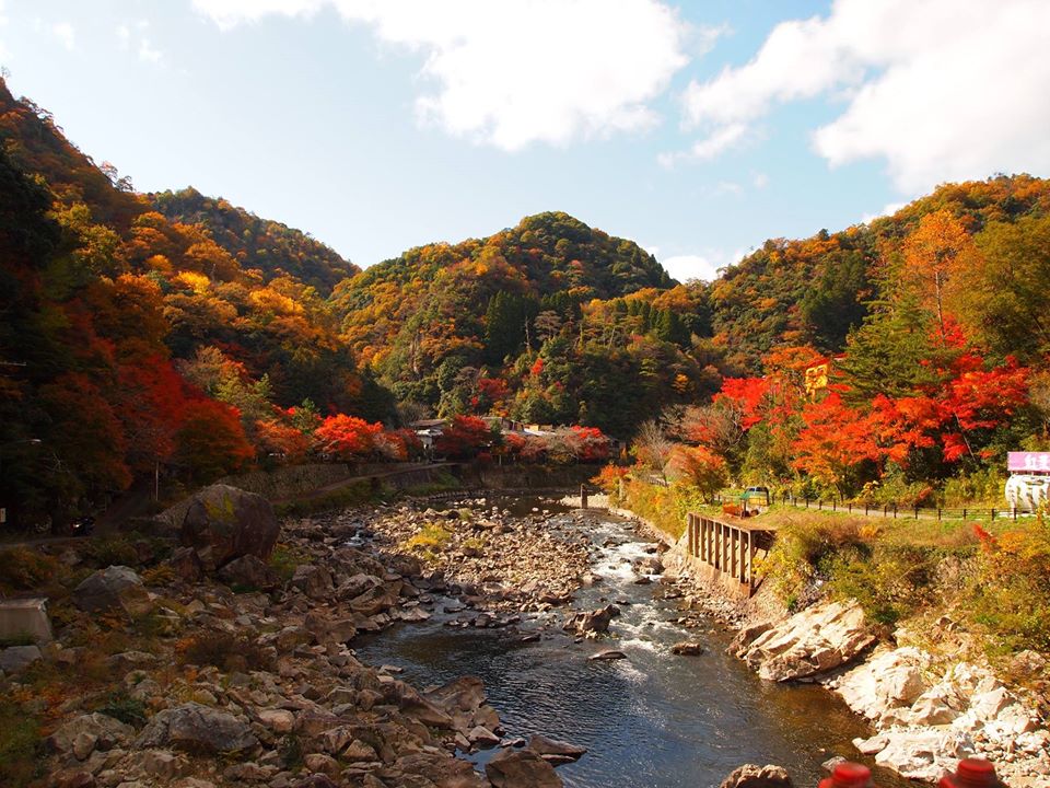 武田尾温泉 元湯は、JR宝塚駅から電車でわずか8分、駅から700メートルという便利な場所にありながら、街では味わえない大自然が満喫できます。特に、秋になると、施設周辺は絶景の紅葉で彩られるので、足をのばして見ておきたい景色です。