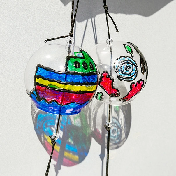 ステンドグラスのような華やかな風鈴が作れます。好きな絵を描いて中にライトも仕込め、夏休みの工作にもおすすめです。