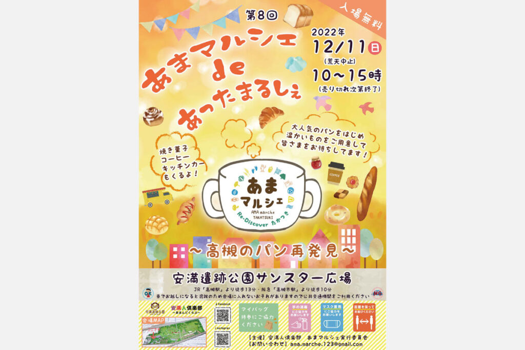 大阪・高槻で、「第8回 あまマルシェdeあったまるしぇ ~高槻のパン再発見~」が2022年12月11日(日)に開催される。