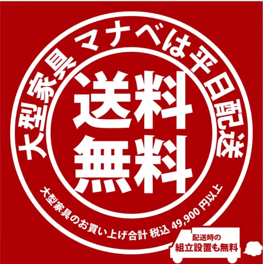 大型家具は税込49,900円以上購入なら、平日限定で送料無料に!さらに配送時の組立設置も無料です。
