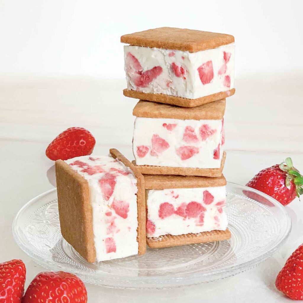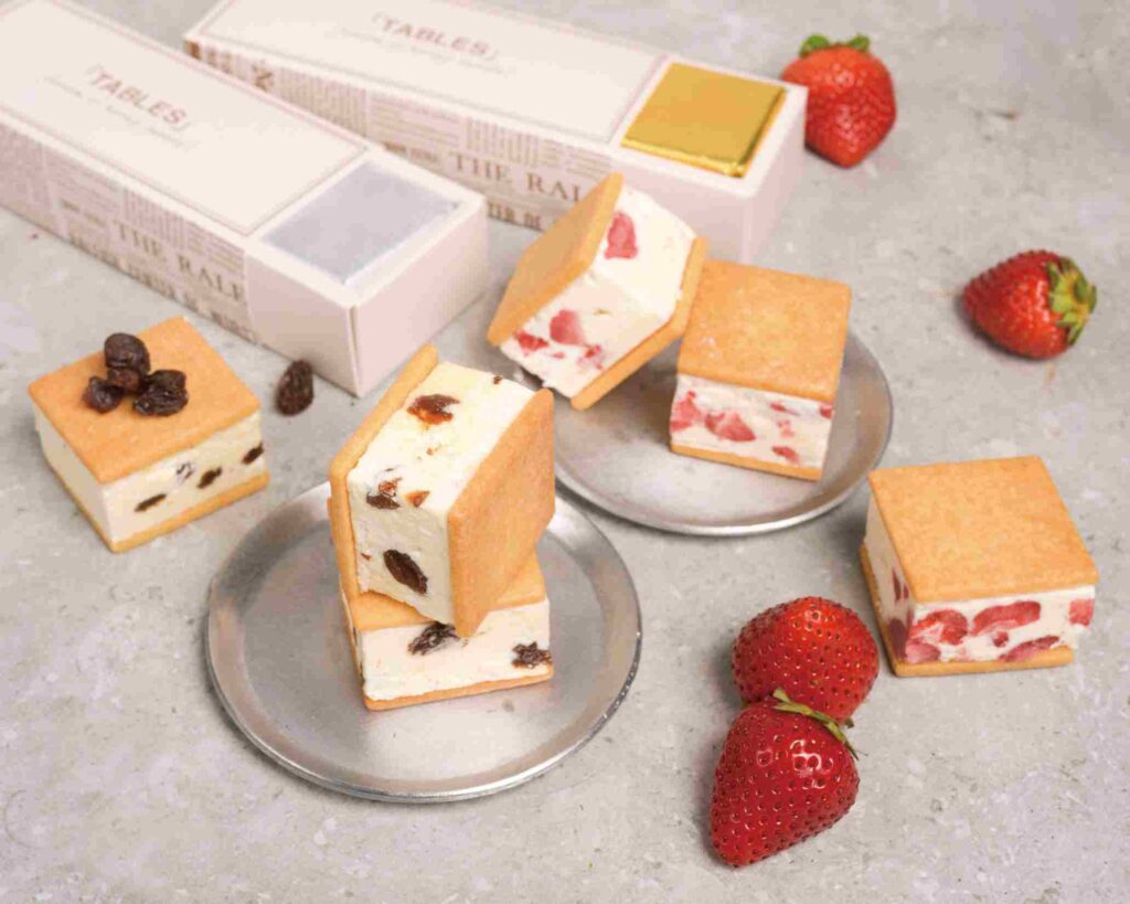 なお、「TABLES KITCHEN」(タブレスキッチン)にはもう一つ「堀江バターサンド」があり、そちらは「堀江バターサンド イチゴミルク」3個入り 1,000円。このバターサンドには、先ほどのバタークリームに、フリーズドライの甘酸っぱいイチゴをたっぷり入れ、ほんのり洋酒で香り付けしたもの。ミルキーなバタークリームに甘酸っぱいイチゴがしっかり感じられるバターサンドは、かわいいスイーツというよりやっぱり大人の上品なデザート。