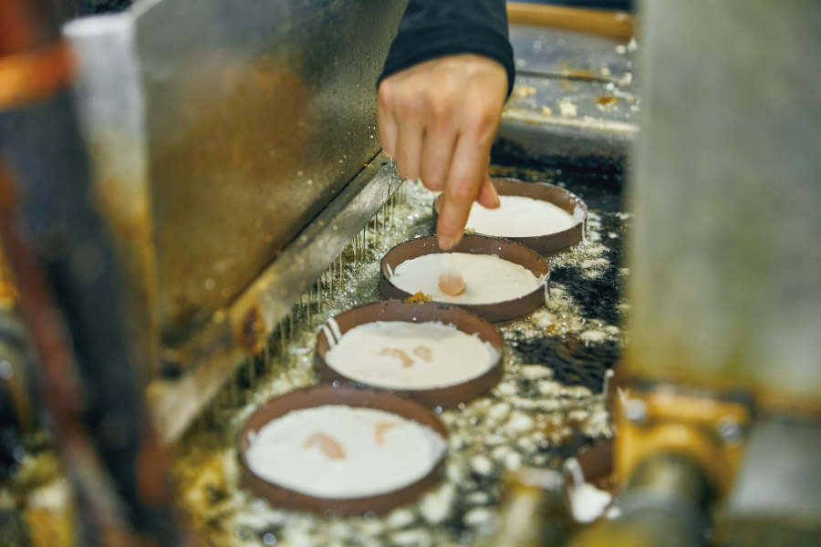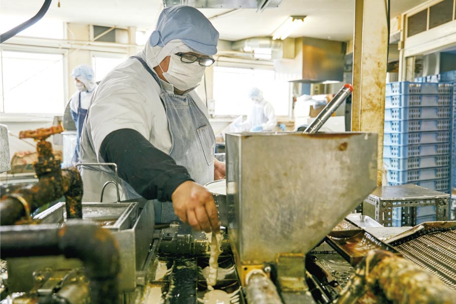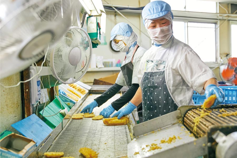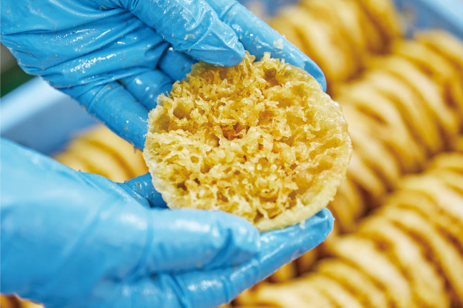 「揚げ不足などがあれば追加で揚げなおすことも。やっぱり人の目が一番なんです」と教えてくれた。同社は26人と小さな会社だが、新製品を作るにも全員で話し合うアットホームな社風が、天ぷらのカラリとした仕上がりに似ている。