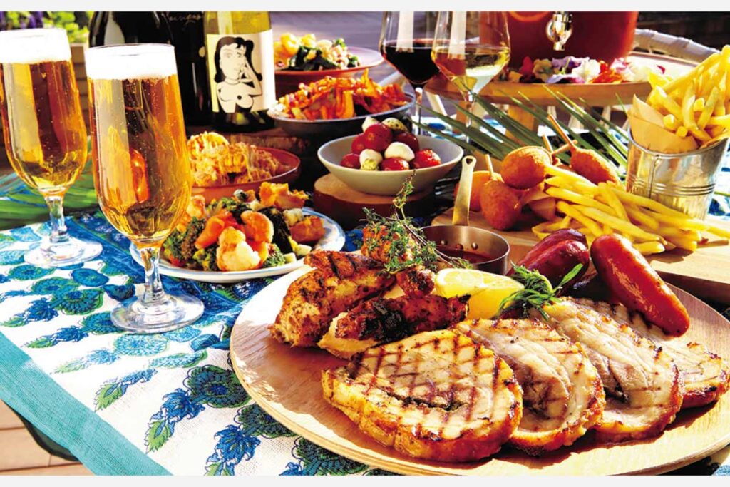 「そらのビアガーデン」は、カフェやパティスリーなどを展開する「TOOTH TOOTH」がプロデュース。プランごとに異なる豪華なメインと、野菜たっぷりのデリやフリット、ピザなどの料理をビュッフェ形式で楽しめる。ドリンクが60種類以上あるのもうれしいところ!