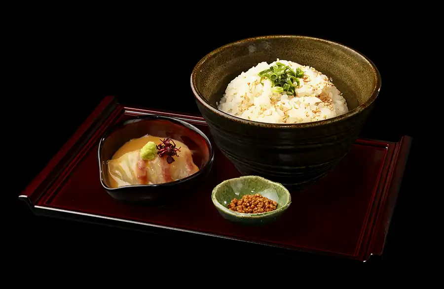 また、芸術品とも呼べるこのスープをかけていただく「胡麻鯛茶漬け」も「鯛塩そば灯花(とうか)阪急西宮ガーデンズ店」ではラーメンとあわせて注文したい一品です。「胡麻鯛茶漬け」は胡麻がかかった硬めに炊かれたごはんに、鯛の切り身をのせていただくもので、ラーメンのスープをかければ真鯛のうま味やスープを余すことなく堪能することができます。