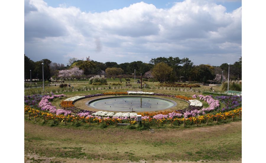 まずは”公園”と聞いてイメージする花壇から。服部緑地でシンボル的なイメージとなっているのが「円形花壇」です。
