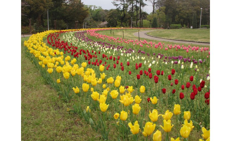 花壇には春はチューリップやバラ、夏はヒマワリ、秋はコスモス、冬にはパンジーなど1年を通して季節の花が咲き誇り、訪れる人の目を楽しませてくれます。