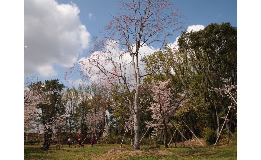 服部緑地には多くの桜もあります。ゆっくり桜を楽しめるのが、「円形花壇」から2時の方向に位置している「サクラの杜」。