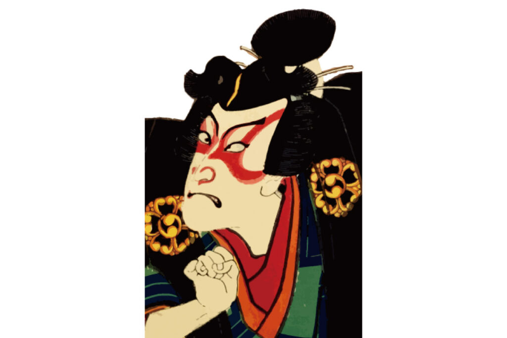 俳優の顔に施される独特の化粧のこと。顔の筋肉や血管を強調し、役柄の性格や感情を表す。赤は正義や勇気、青は冷酷さや悪、茶は鬼や妖怪の役に使われる。