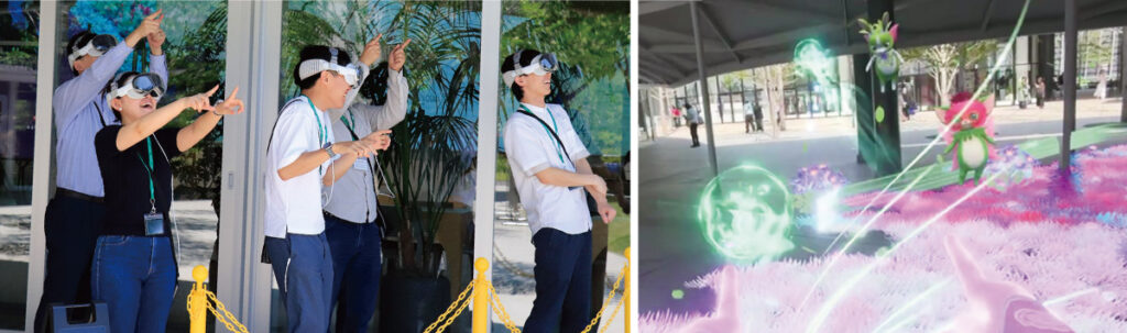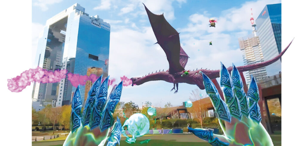 うめきた公園にいたはずが、気づけば向かってくる敵から身をよけたり、梅田の上空を飛んでいたり!?足が震えるほどのリアルな感覚が味わえるだけでなく、指先から魔法を出して敵をやっつける、体の動きと連動した演出も面白さの一つ。はたから体験中の人を眺めると、何が見えているのか不思議なのだが、体験すればその理由が分かるはず!