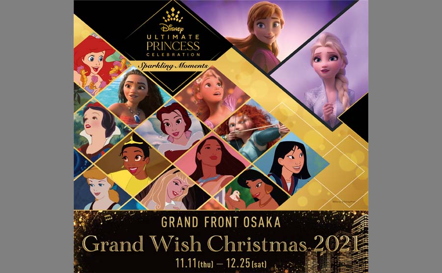 グランフロント大阪では、2021年11月11日(木)~12月25日(土)まで、ディズニーが“勇気と優しさ”をテーマに、 グローバルで展開するディズニープリンセスの祭典「アルティメット・プリンセス・セレブレーション」とタイアップしたクリスマスイベント『Grand Wish Christmas 2021 | Disney Ultimate Princess Celebration~Sparkling Moments~』 (グランウィッシュクリスマス2021 ディズニー・アルティメット・プリンセス・セレブレーション~スパークリングモーメンツ~)を開催。
