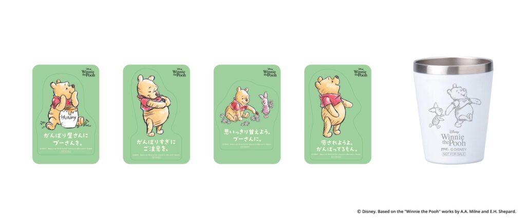 なお、「くまのプーさん 原作デビュー95周年記念 100エーカーの森 フェスティバル」 では、期間中会場でくまのプーさんの商品を税込み1,500円以上購入すると先着で1万名様に「くまのプーさん ステッカー(4種)」の1枚を、10,000円以上購入すると各日先着80名様に「オリジナル ステンレスタンブラー」をプレゼント。