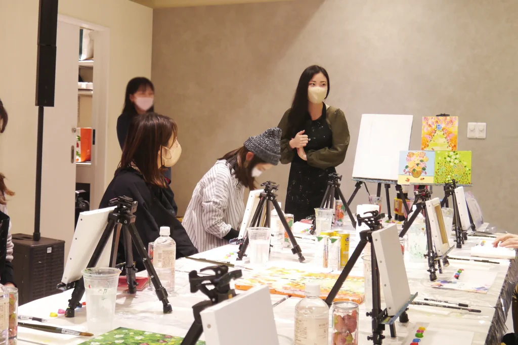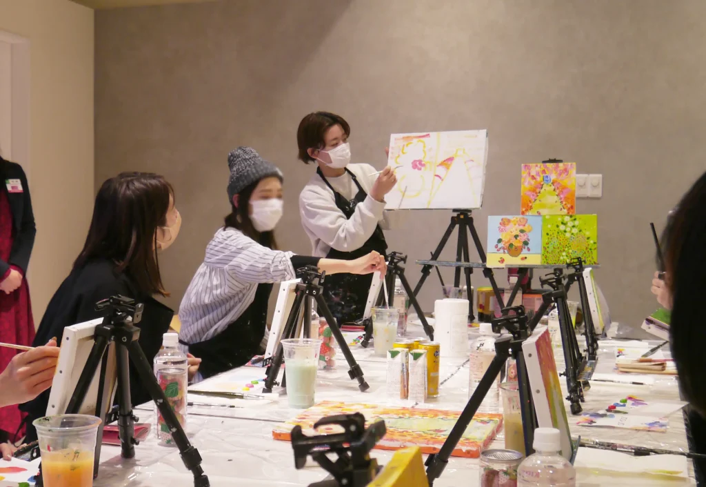 通常は、ワイングラスを片手に現役のアーティストからレクチャーを受けながら絵筆を走らせる大人の楽しいイベントを実施している「Artbar Osaka(アートバー大阪) 」。