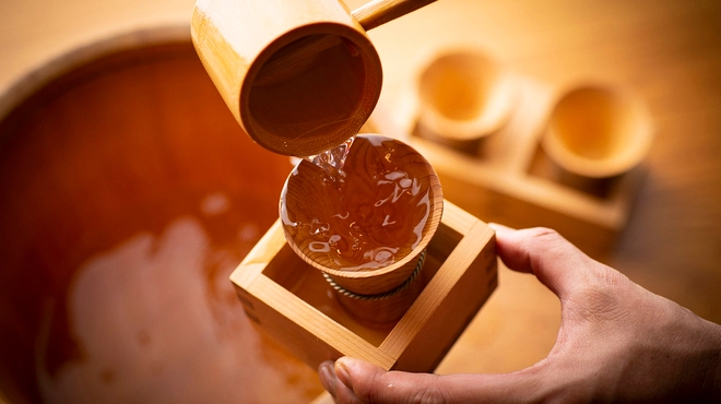 「日本酒バル さわら グランフロント大阪」の名物は「さわらの樽香酒」。店名の由来であるヒノキ科の高級木材「さわら(椹)」の木樽を使用した日本酒です。さわら(椹)の香りが移った香り高い日本酒を楽しめますよ。