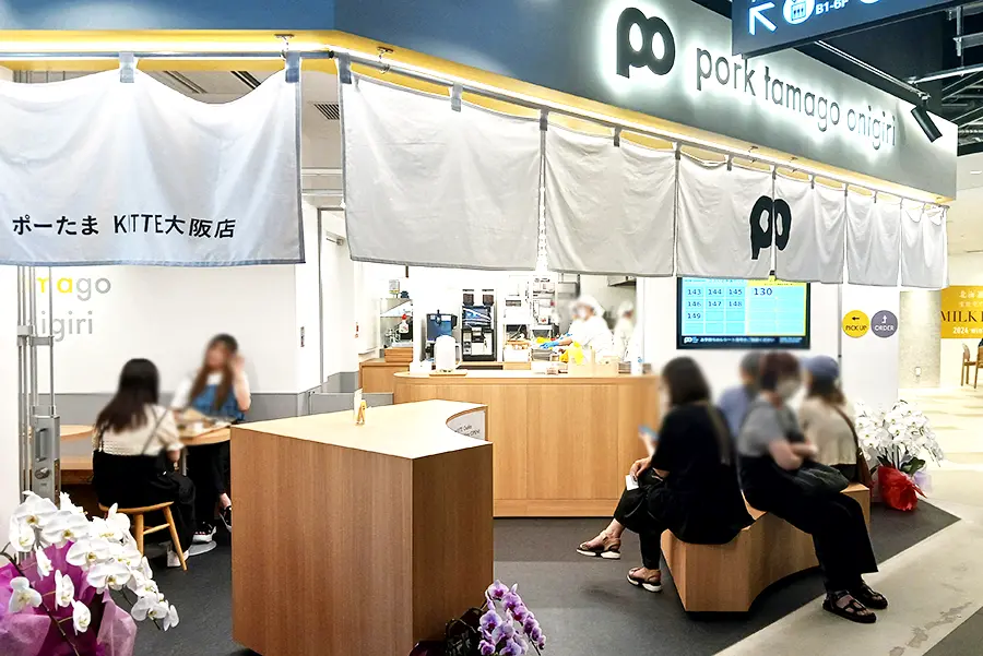 ポーたまとは、ポークランチョンミートと玉子焼きをごはんと海苔で挟んだ沖縄のソウルフードです。ポーたま KITTE大阪店は、ポークたまごおにぎり(=ポーたま)の専門店で、開店以来、行列必至の人気店です。
