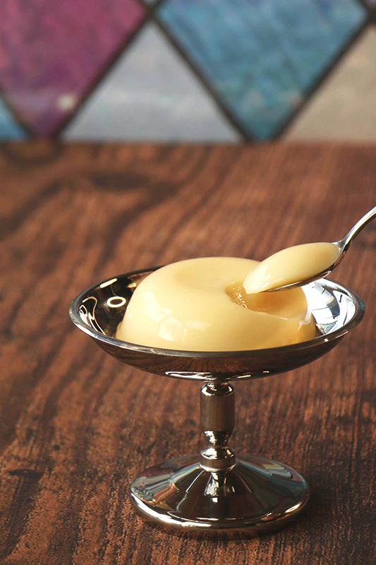 その濃厚なミックスジュースの味わいを、なめらかでとろけるような食感のプリンで表現。