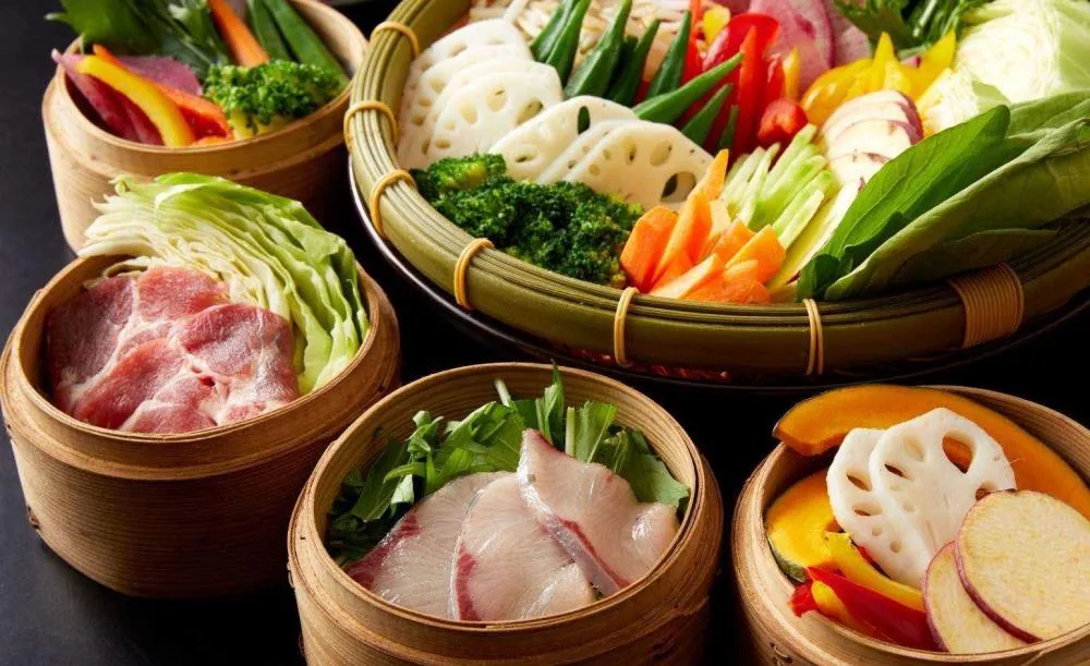 豚肉やいか、新じゃがいもなどの中から好きな食材を自分でせいろに盛り合わせて蒸してもらう「お好みせいろ蒸し」や、ホテルメイドのパンも充実!