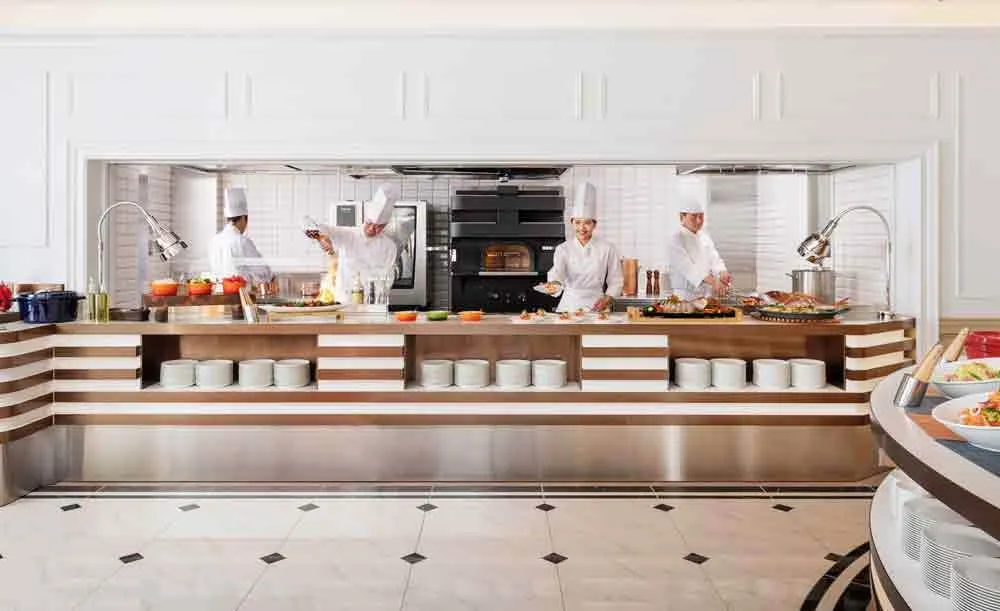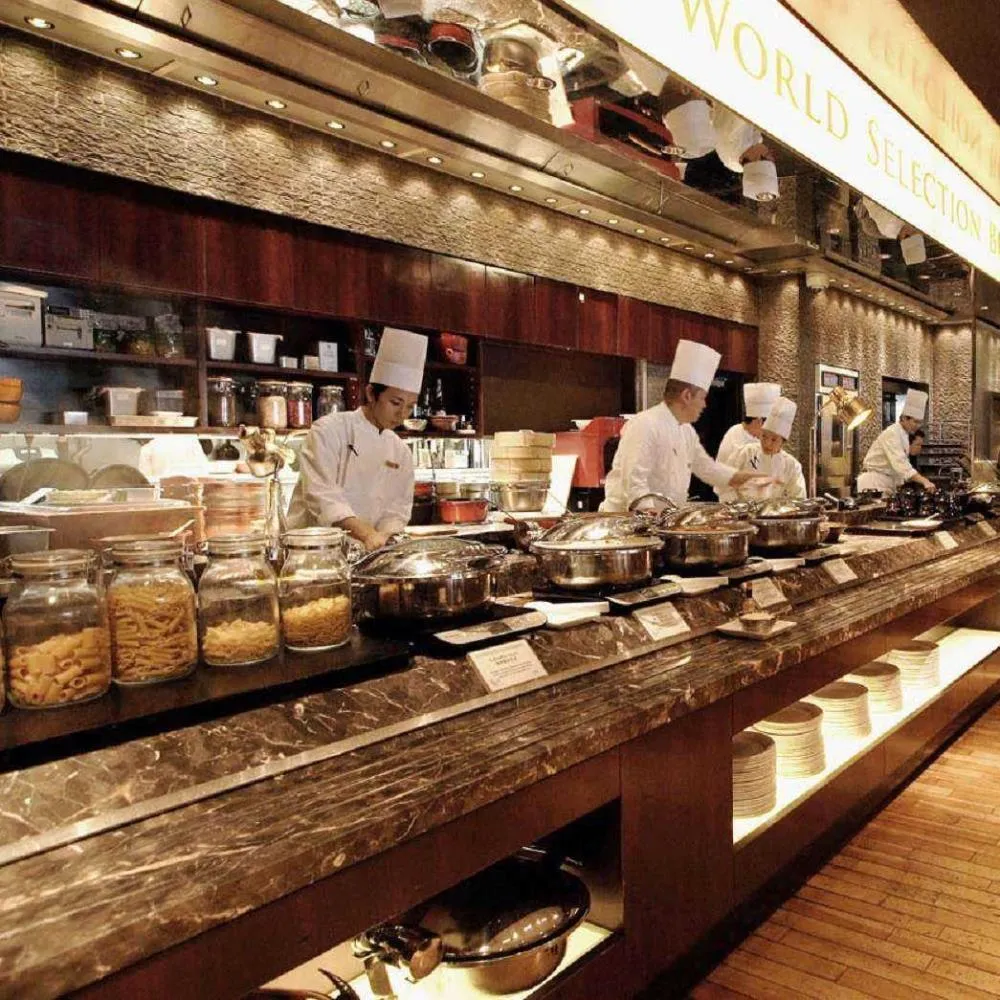 阪急大阪梅田駅から徒歩約3分、ホテル阪急インターナショナルのビュッフェ&カフェレストラン「ナイト&デイ」では、ライブ感あふれる“劇場型ライブキッチン”が魅力のビュッフェを開催中。シェフが目の前で仕上げる牛肉のポアレやビーフシチューは、まさに出来たてのおいしさ。