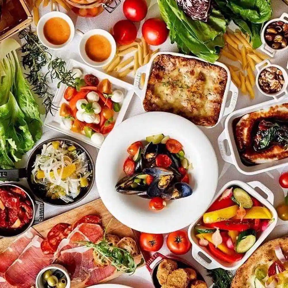 ビュッフェには、夏野菜たっぷりのクスクスや牛肉の旨みが広がるオーソブッコなど、夏の恵みを味わえる料理がずらり。どれも色鮮やかで食欲をそそる一品ばかりです。