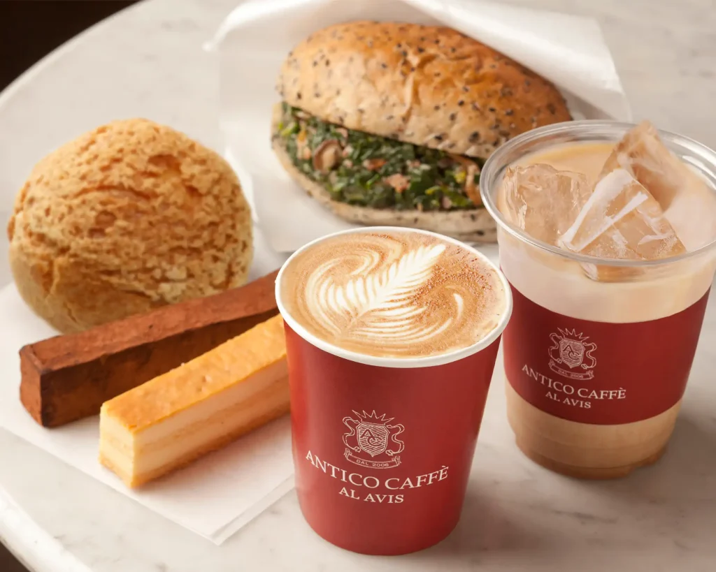 店内では、バリスタが一杯ずつ丁寧に淹れるエスプレッソやカフェラッテ、カプチーノなど、約20種類のカフェメニューが楽しめます。朝から夜までいつでも立ち寄れる気軽さが魅力で、リピーターも多い一軒です。