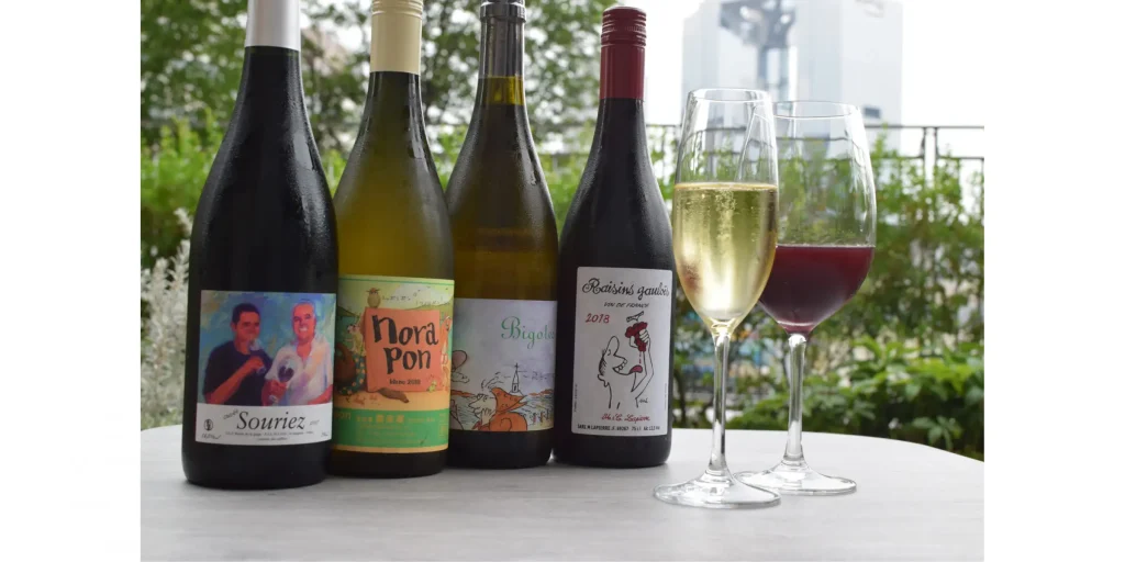 「café boo vin nature カフェ ブー 西梅田」では、グラスワインはもちろん、数十種のボトルナチュラルワインをセラーから選べるのも魅力。
