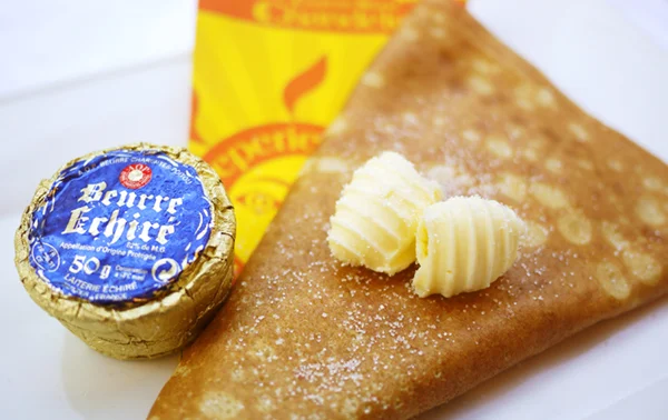 クレープリースタンド・シャンデレールでまず味わっていただきたいのは、シンプルながら奥深いおいしさの「フレンチ・シュクレ」!日本によくある一般的な生クリームたっぷりのスタイルとは異なり、バターと砂糖だけで仕上げ、素材の美味しさを堪能できるシンプルなクレープです。