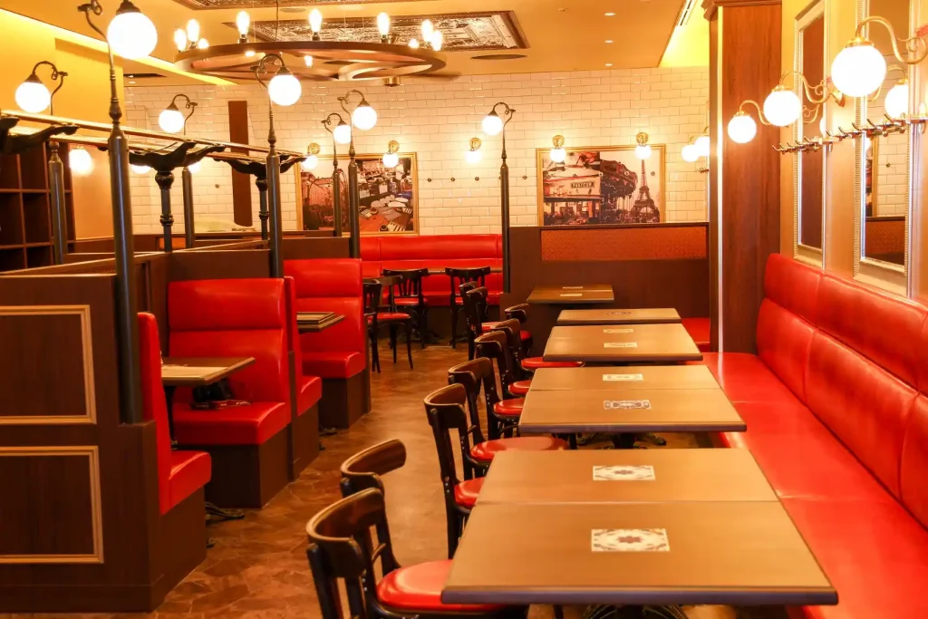 赤色を多用したフランスのようなおしゃれな店内は、過ごすだけで気分が上がること間違いなし。ぜひショッピング中の休憩やデートにと、いろいろな場面で立ち寄ってみてください。