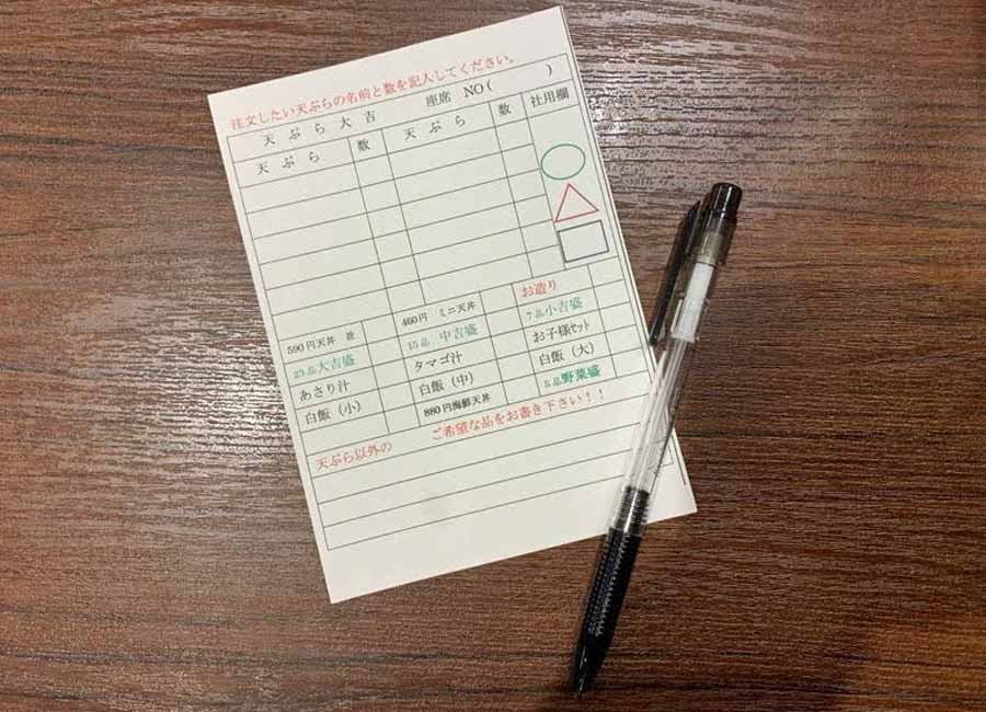 注文は自分たちで紙に記入。じっくり選べる大吉スタイル