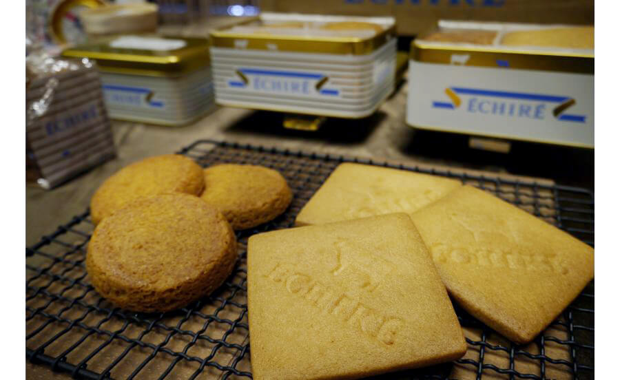 2012年10月のうめだ阪急でのオープン以来、行列が絶えない人気店、フランスの伝統的製法で作られる発酵バター・エシレバターのお店「エシレ・マルシェ オ ブール」。「エシレ・マルシェ オ ブール」では、フレッシュなミルクで作った濃厚さが自慢のエシレバター(無塩・有塩)のほか、エシレバターを使用したサブレやスイーツ類を購入することができます。