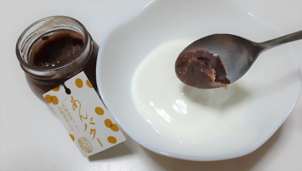 ヨーグルトに入れてみると、少し和風テイストになって小豆感がでるのでアジアのおやつのようで新鮮です。あんバターのバターがヨーグルトによく合っておいしい!