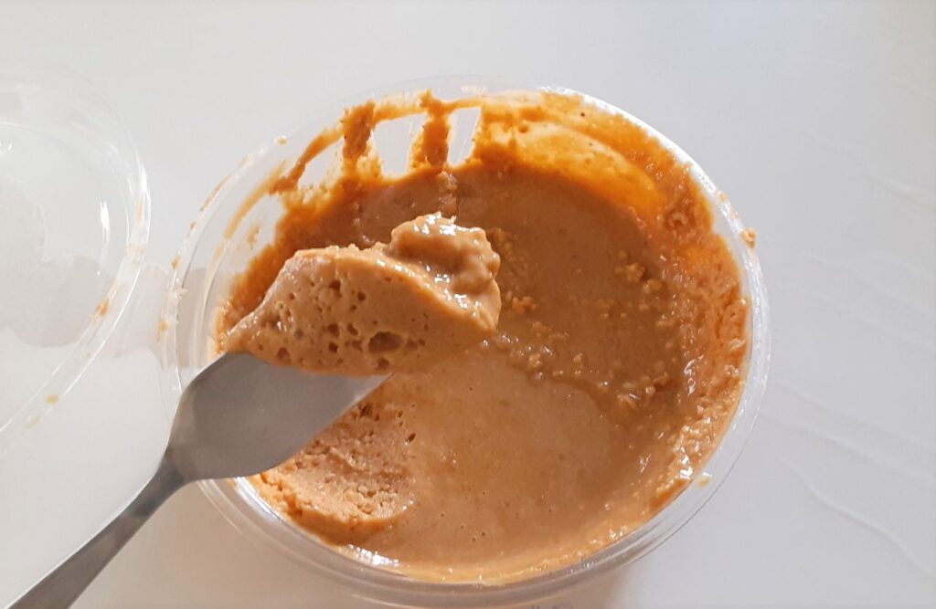 絞りたてのピーナッツの香りは、格別!フタを開けただけで香ばしいピーナッツの香りが漂います。そのままだともったり重いので、少し練るとやわらかさとツヤが出てきます。