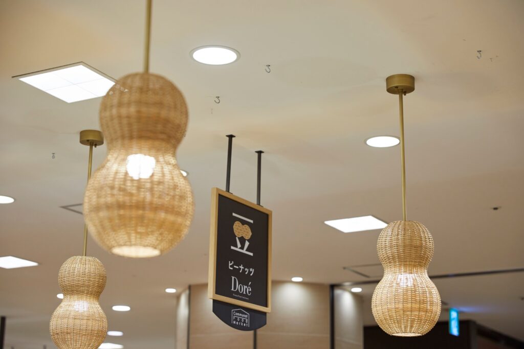 ランプシェードがピーナッツ型なんですね、かわいい!