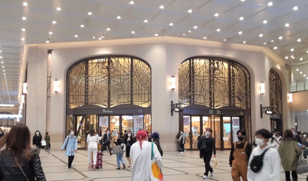 平日のお昼ですが、うめだ阪急入り口の辺りはいつもこのような人の多さ!休日となればさらにすごい人出です。