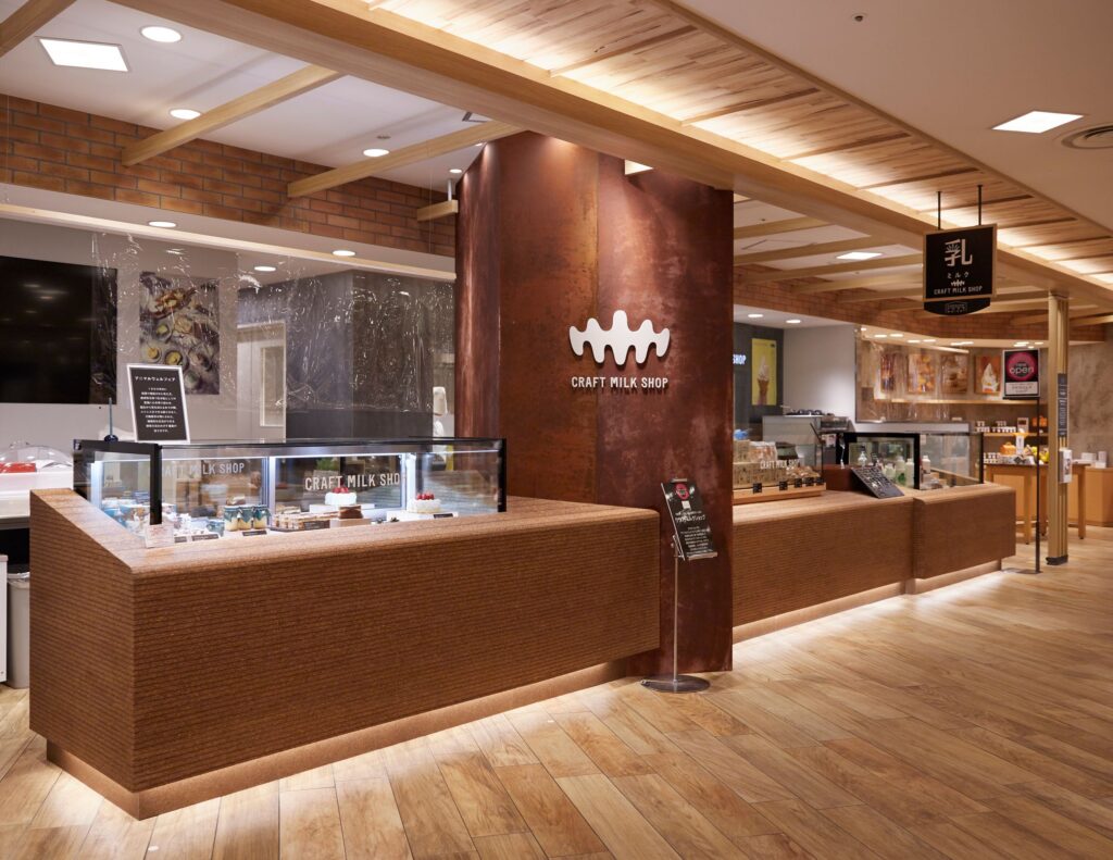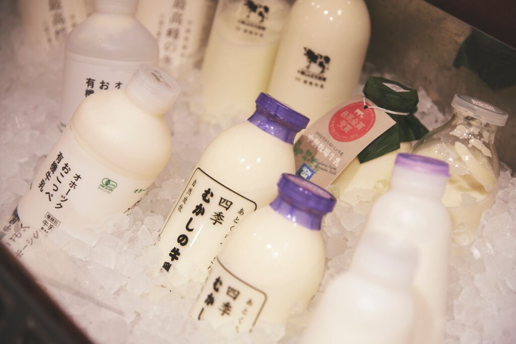 グラスフェッドミルクなど、国内約15の牧場のクラフトミルクが並ぶ「クラフトミルクショップ」。これらのミルクは、雑味がなく、牧場ごとに味が全然違うのだとか。