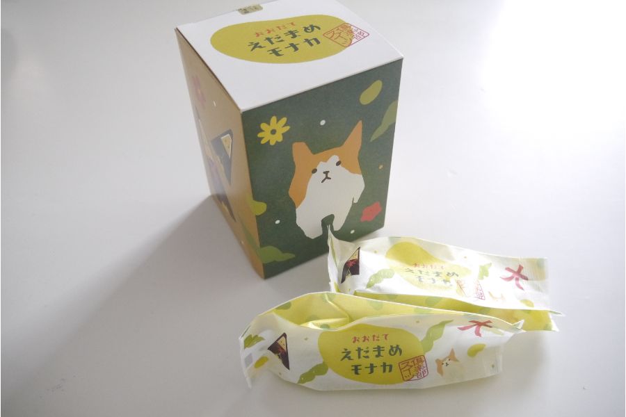 3つめは、忠犬ハチ公の故郷としても知られる秋田県北部の城下町・大館にある明治34年創業の和菓子店「山田桂月堂」。大館の銘菓としても知られる、看板商品の寒氷にクルミを散らした「明けがら寿」をはじめ、新旧をミックスした「クリーム入り 羽二重餅」も大人気のお菓子店です。そんな「山田桂月堂」が地元のお菓子店と共同開発し作ったのが、大館の名物”えだまめ”を使った「おおだてえだまめモナカ6個入BOX」970円です。