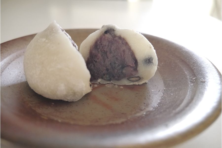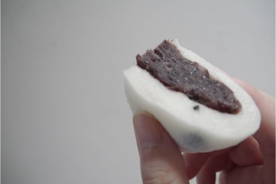 北海道羊蹄地区の小豆・きたのおとめを使用し、塩を使うことで甘さを引き立てたなめらかなつぶ餡は、後をひかない上品な甘さ。このあっさりしたあんを杵でついた国産のもち米の餅で包めば、誰もが納得するあんと餅のバランスもパーフェクトな大福の完成です。餅には、食感もしっかり残った北海道産の赤えんどう豆が入っていて、よいアクセントになっています。