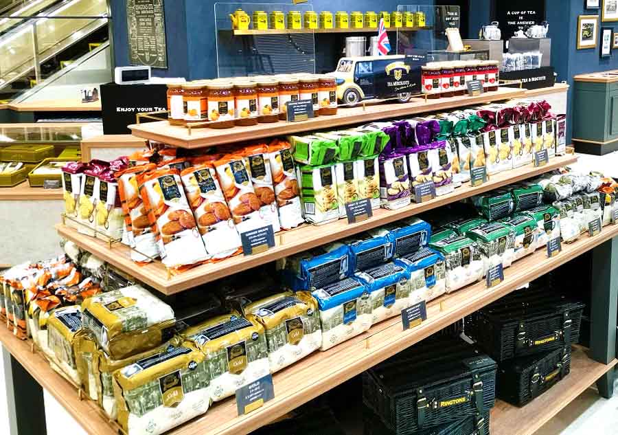 店内では英国人に愛される紅茶やビスケットなどが購入できます。