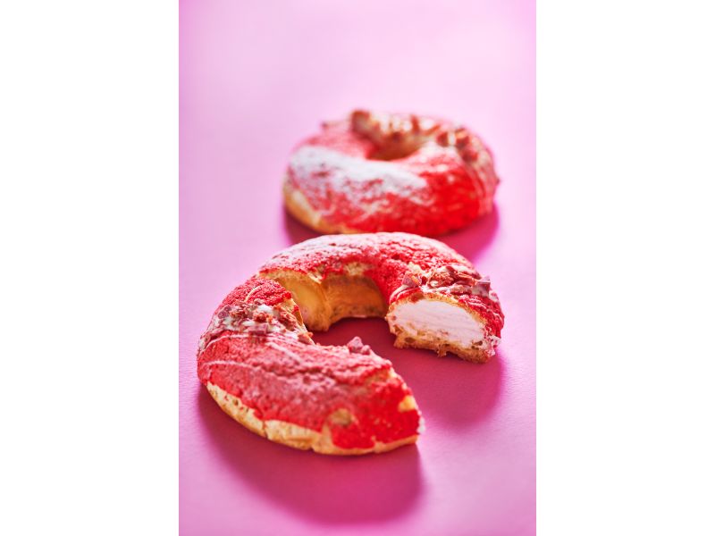 ルビーチョコレートを使用した、ドーナツ状のシュークリームです。鮮やかなピンクからは想像のつかない、繊細な味わいを試してみて。