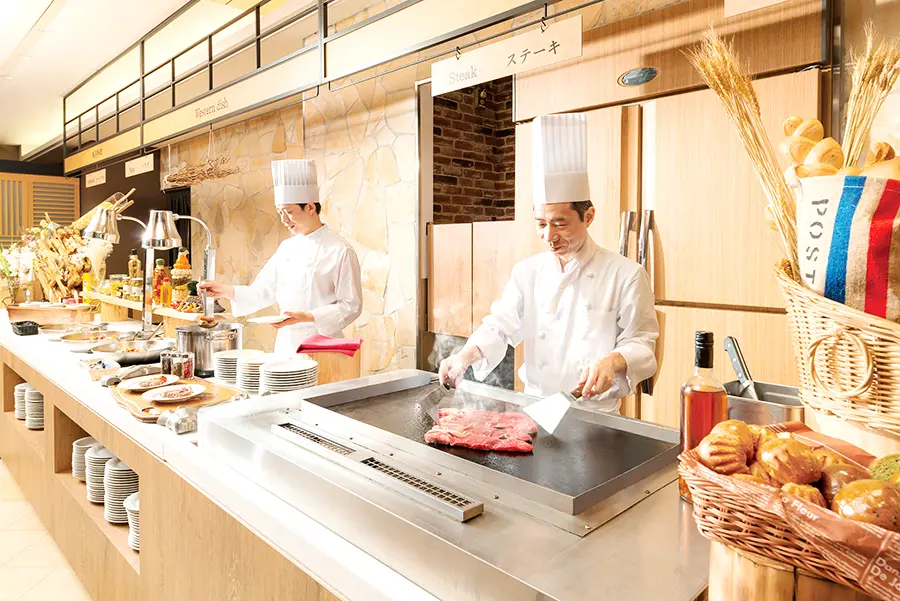 グルメバイキング オリンピアは、おいしくて楽しい、ライブ感あふれる関西最大級のホテルバイキングです。