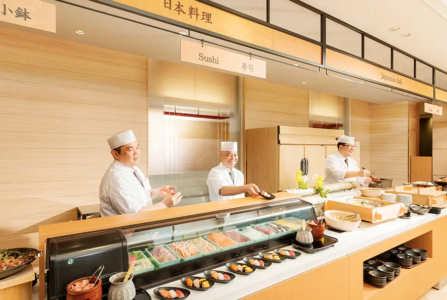 好評のステーキに、揚げたての天ぷら、お好きなネタを目の前で握られるお寿司など。また彩り豊かな中国料理に加えて、デザートの種類も多く、これぞみんなが想像する夢のビュッフェではないでしょうか。もちろん種類も見た目だけでなくおいしさもとびきり!どれもこれも食べたくなります。