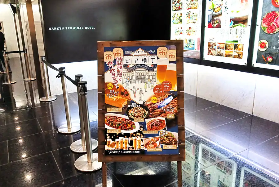 大阪新阪急ホテル直営「阪急トップビアガーデン」は、阪急大阪梅田駅下車すぐの場所にある「梅田ターミナルビル屋上」で実施されています。